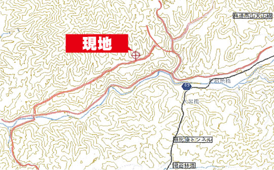 当山林への進入方法として林道からの進入と私道(公衆用道路)から出入との2箇所からできます。 |